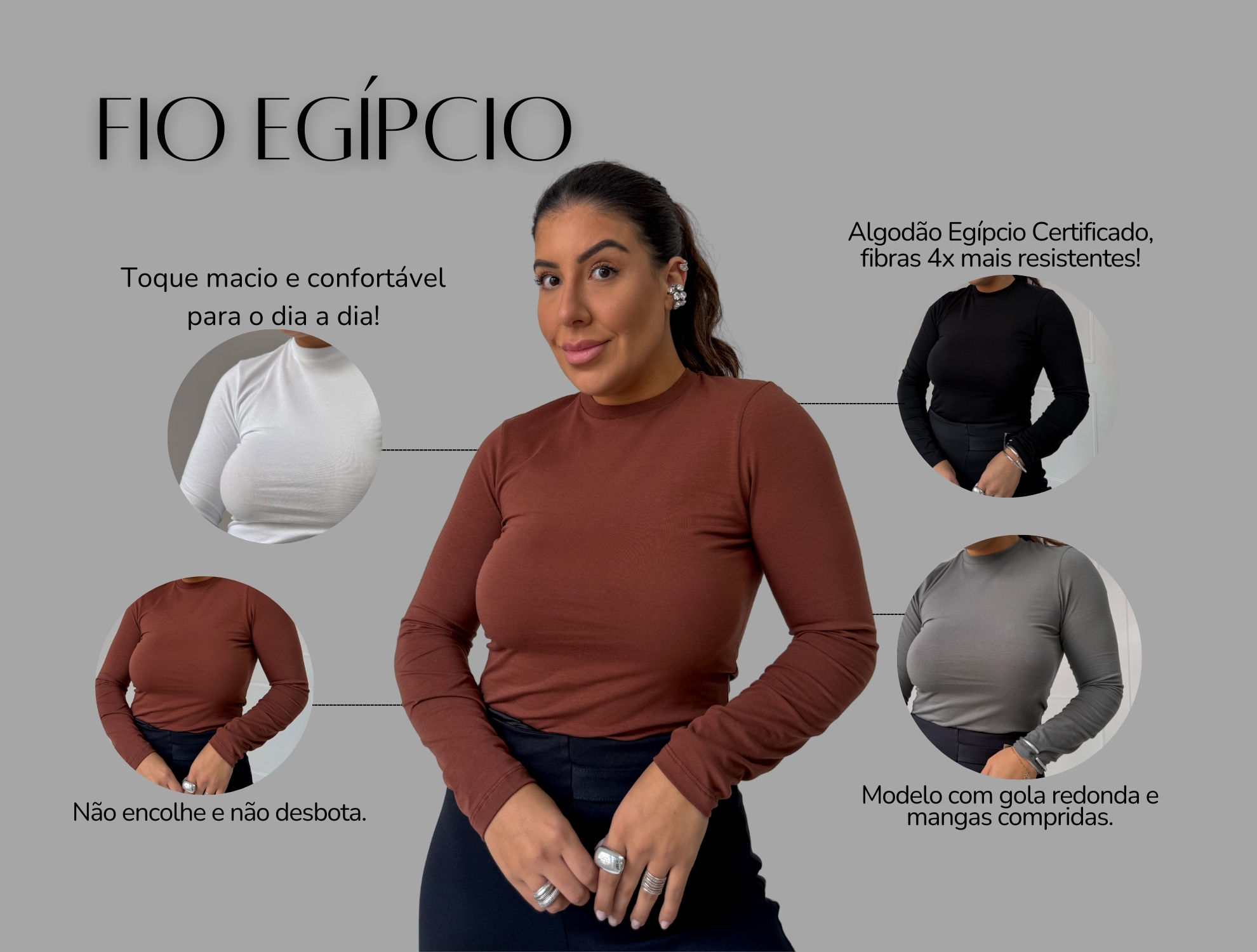 Produzida em algodão egípcio, blusa em gola redonda e com mangas compridas. Não encolhe, não desbota, dura até 4x mais que o algodão comum!