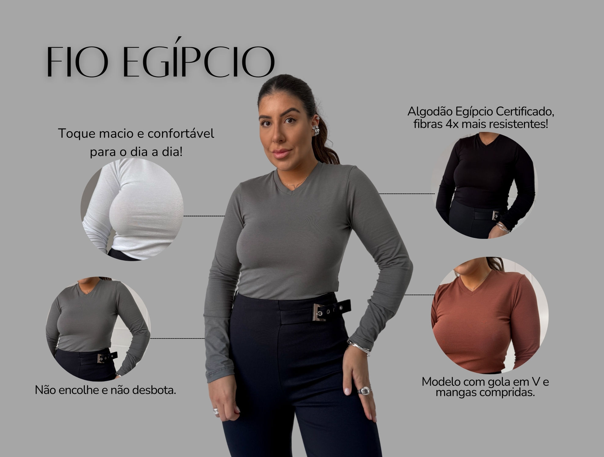 Produzida em algodão egípcio, blusa em gola em V e com mangas compridas. Não encolhe, não desbota, dura até 4x mais que o algodão comum!