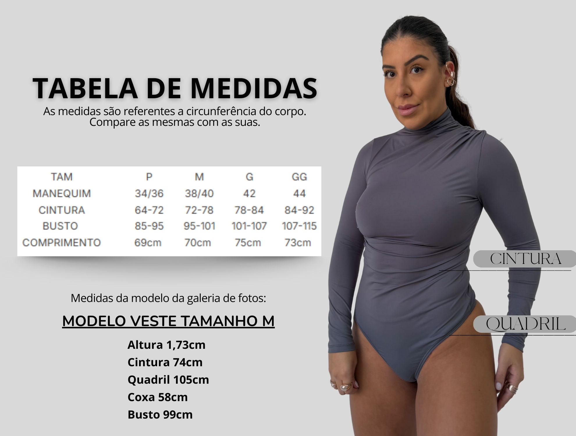 INDICAÇÃO TAMANHO: Forma correta, mas lembre-se de verificar também a tabela de medidas e/ou provador virtual.