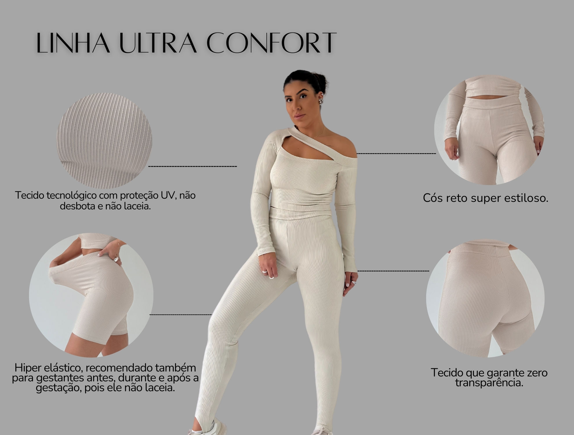 Produzida em tecido tecnológico com trama canelada que tem como benefícios: