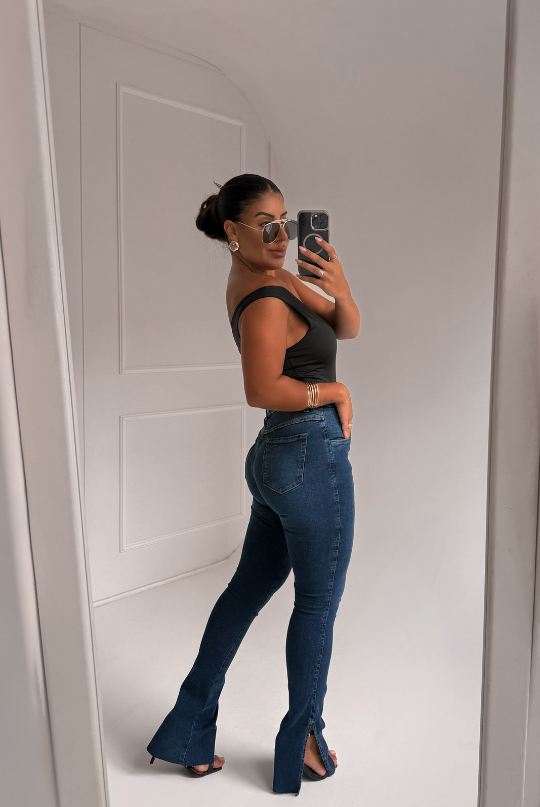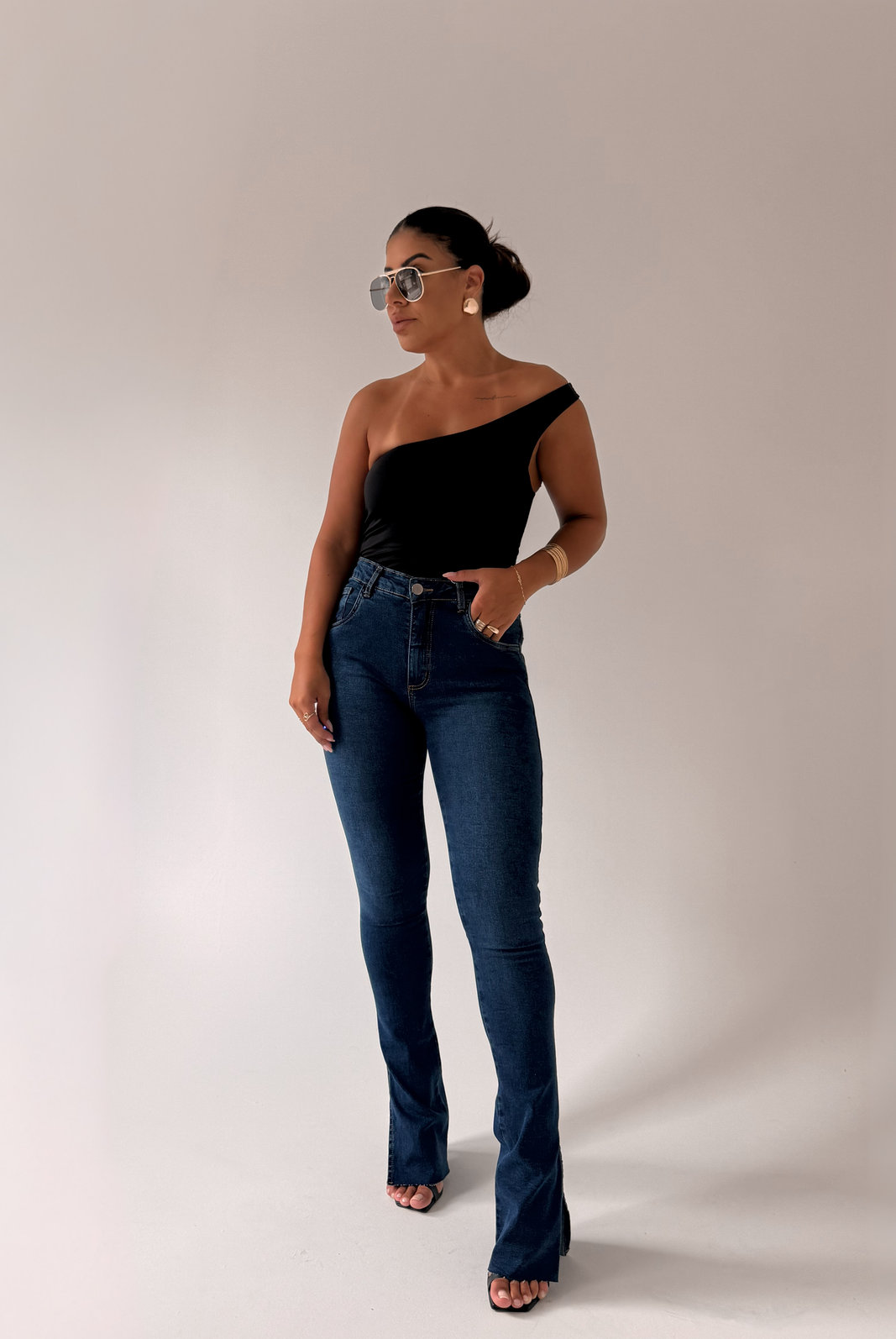 DICA #ACHOCHIC: O corte lateral desse modelo de jeans fica incrível com salto alto. APOSTE!