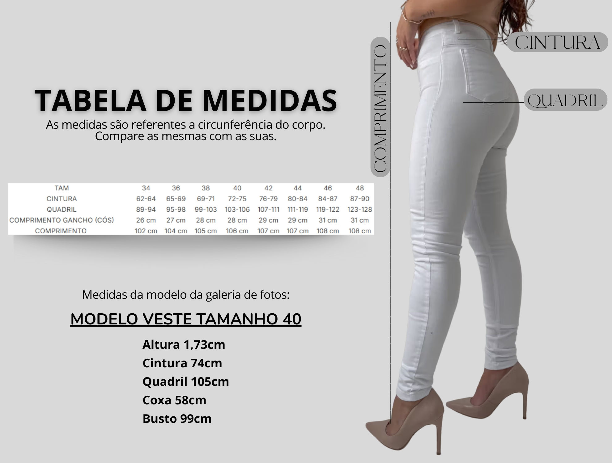 Você nunca vai vestir um jeans tão perfeito na vida! Todos os jeans que chamamos de POWER aqui na AchoChic contém as especificações abaixo: