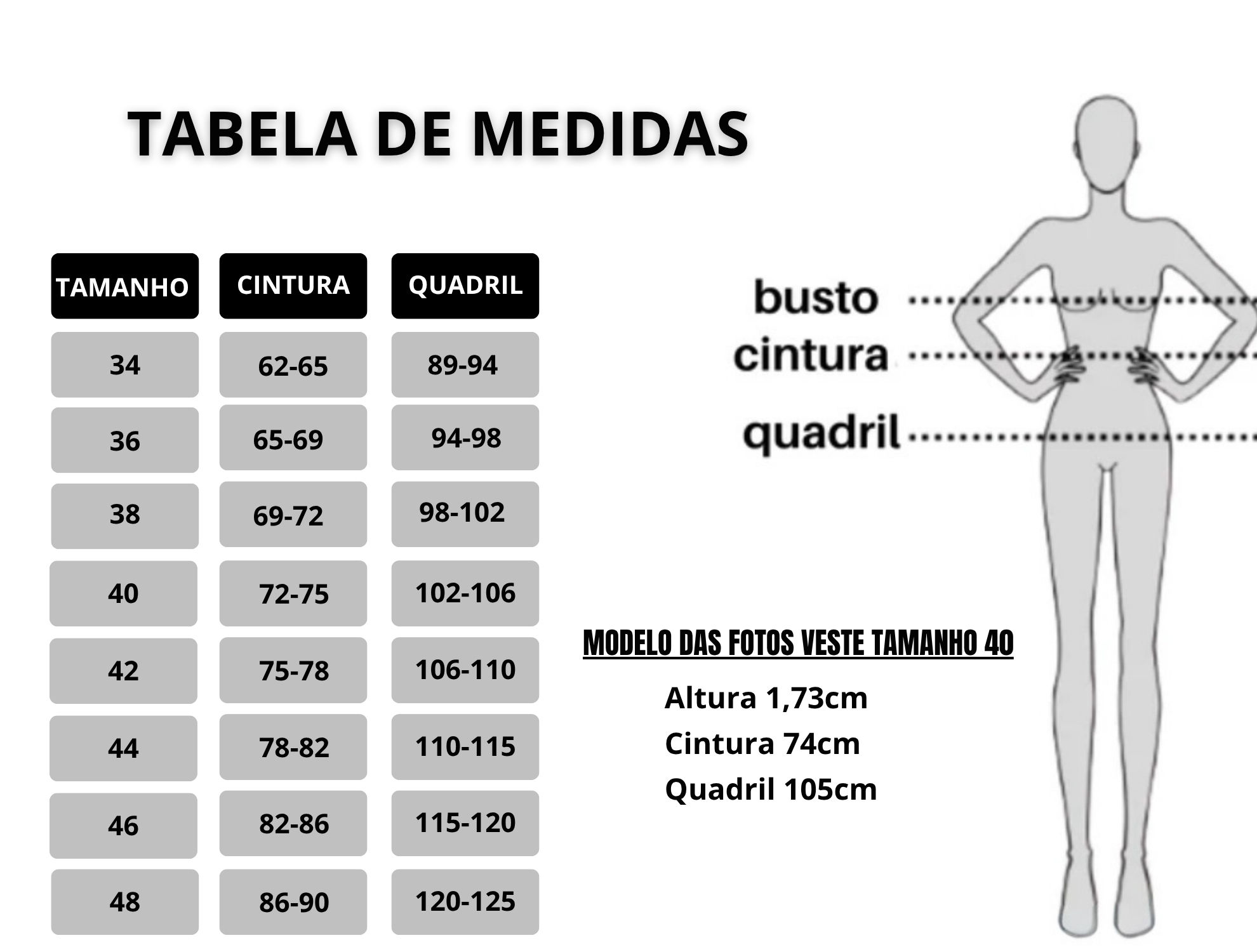 - Alta gramatura (é um jeans mais grosso, não marca nada e esconde a celulite)