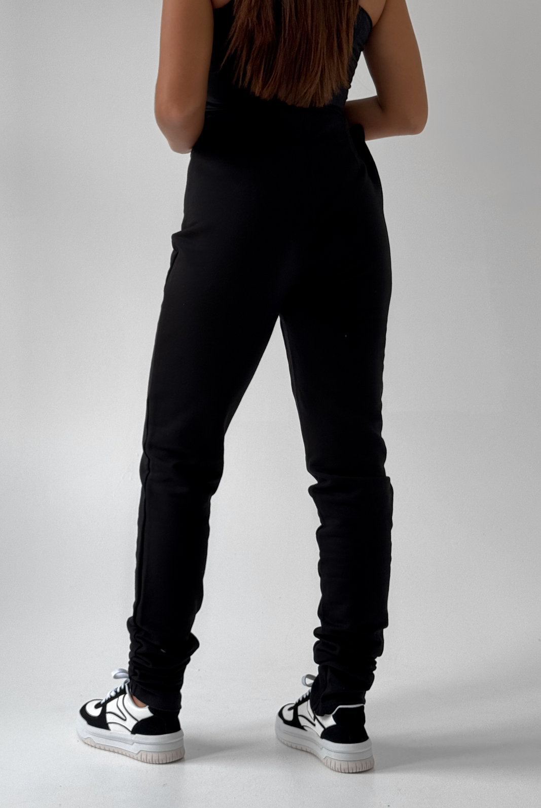 • Possui zíper invisível na barra da calça, abrindo ele o modelo fica com uma fenda interna.