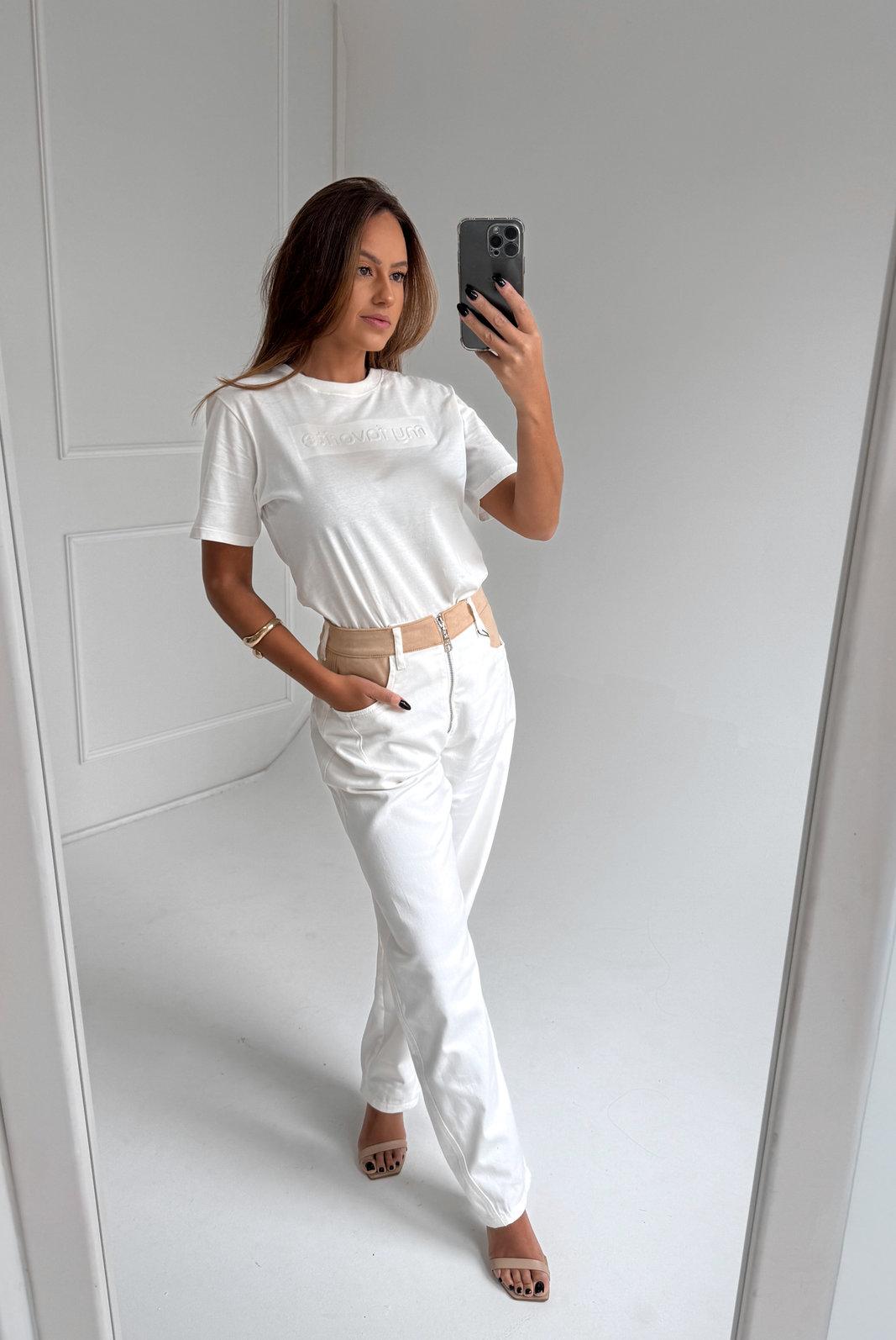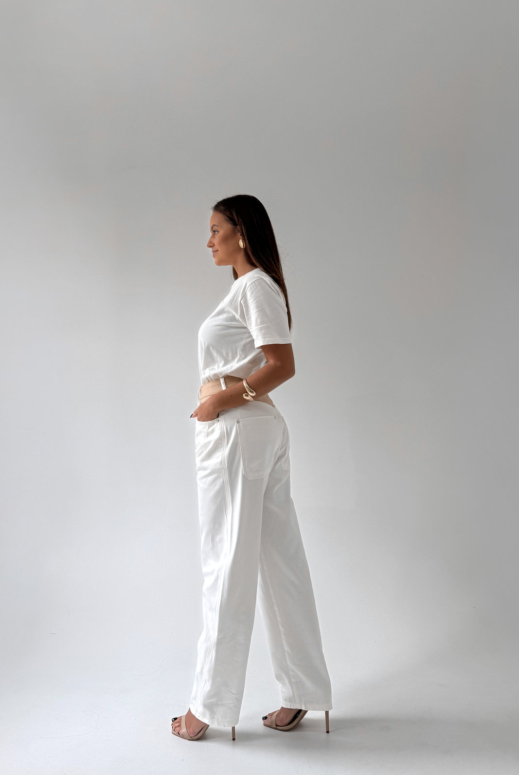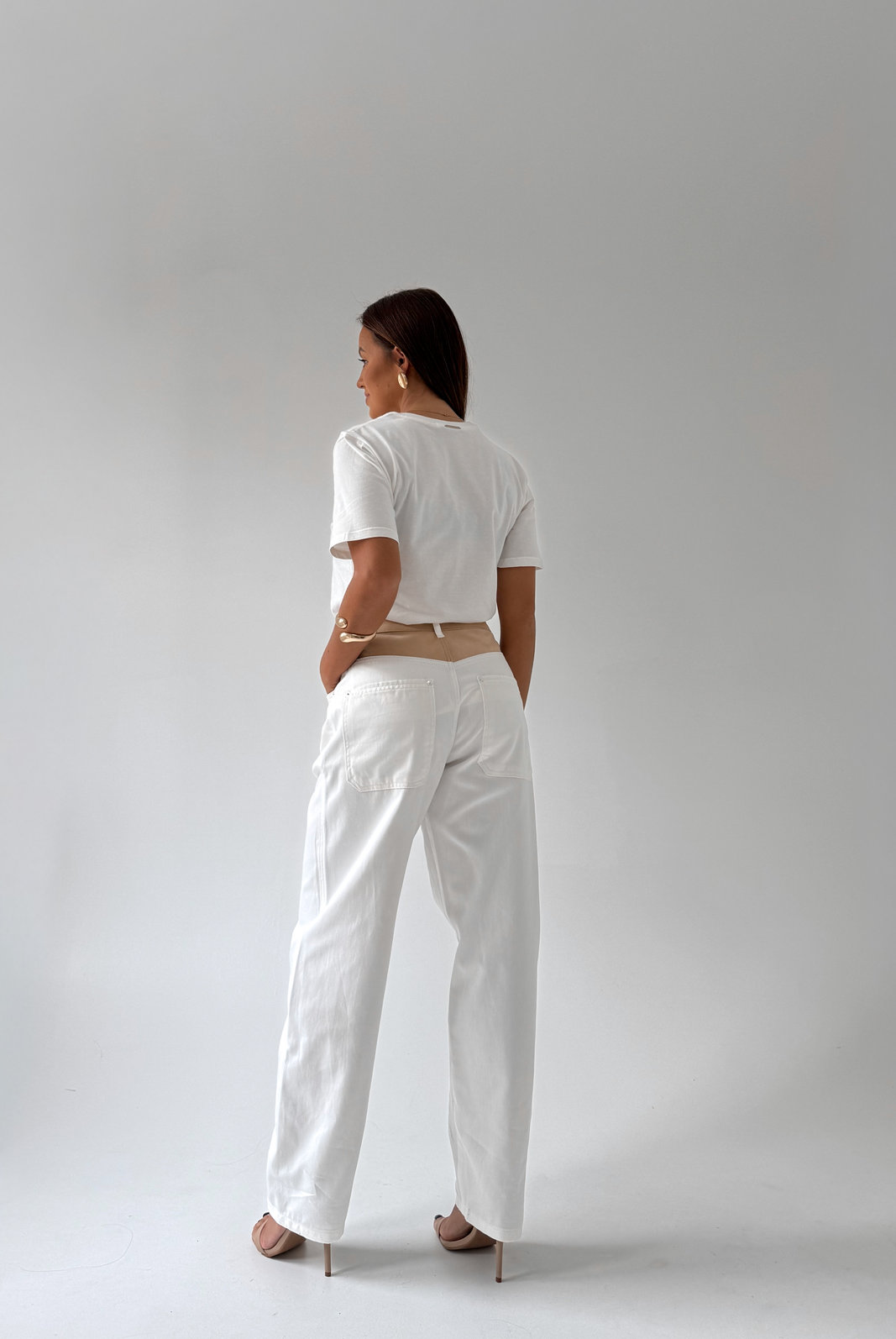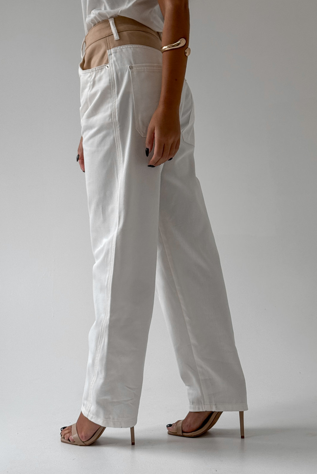 A Calça Sarja Barrel Lesly MYFT possui bolsos frontais e traseiros. Com fechamento frontal por zíper, o principal detalhe desse modelo é o recorte em sarja bege na parte do cós da calça. Modelagem soltinha no corpo, possui também passantes pra cinto e leve (bem pouco!) transparência.