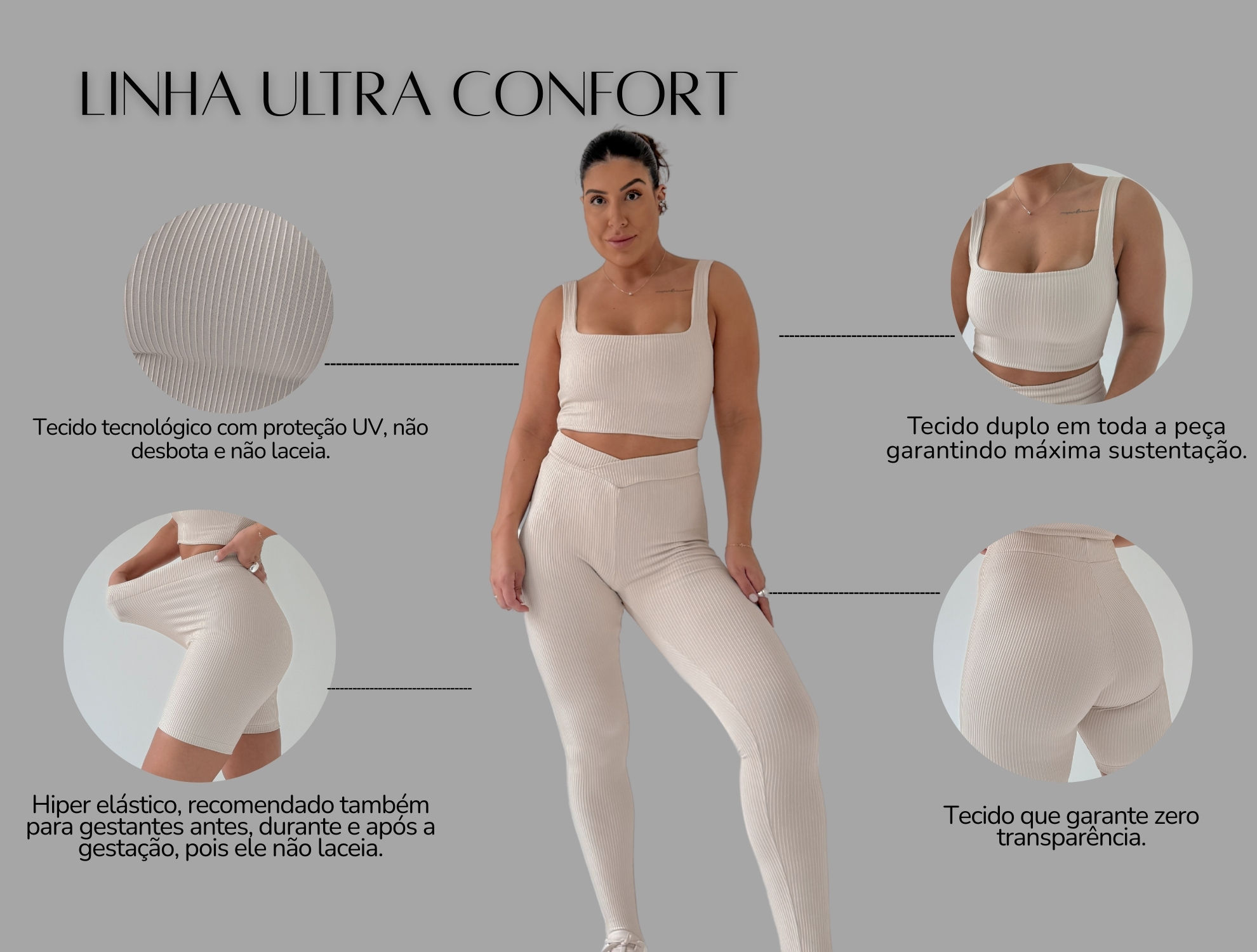 Produzida em tecido tecnológico com trama canelada que tem como benefícios: