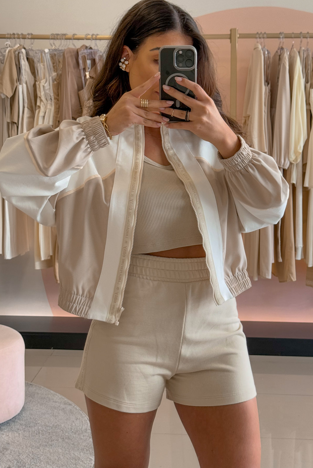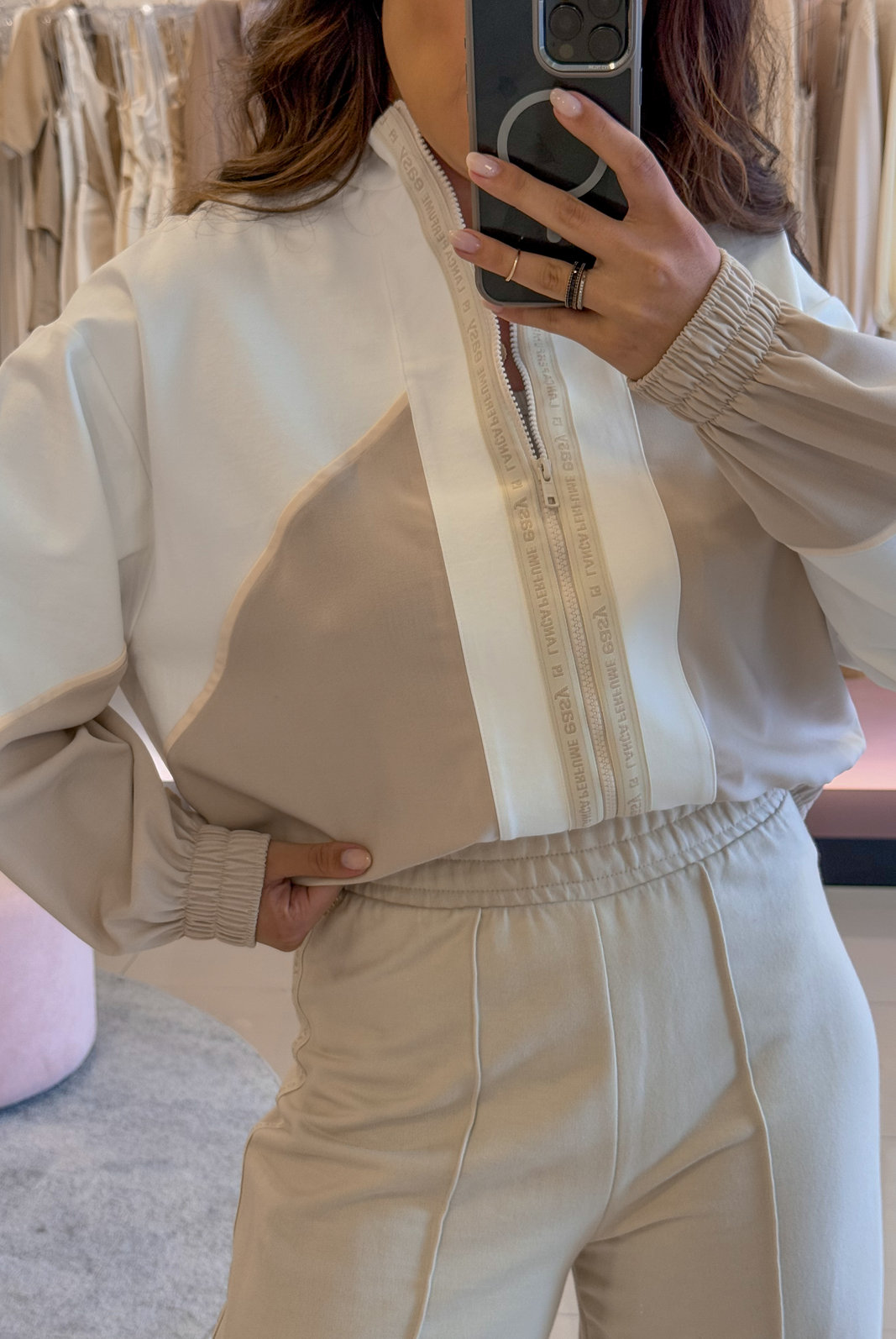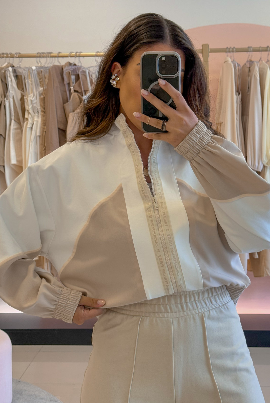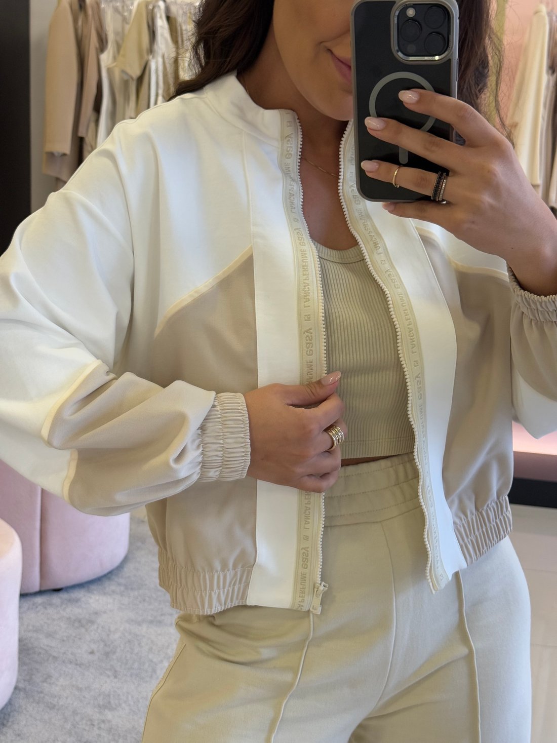 Os punhos e barra com elástico dão caimento perfeito, enquanto o mix de cores neutras deixa a peça ainda mais versátil e atemporal — ideal para combinações práticas, estilosas e cheias de personalidade.
