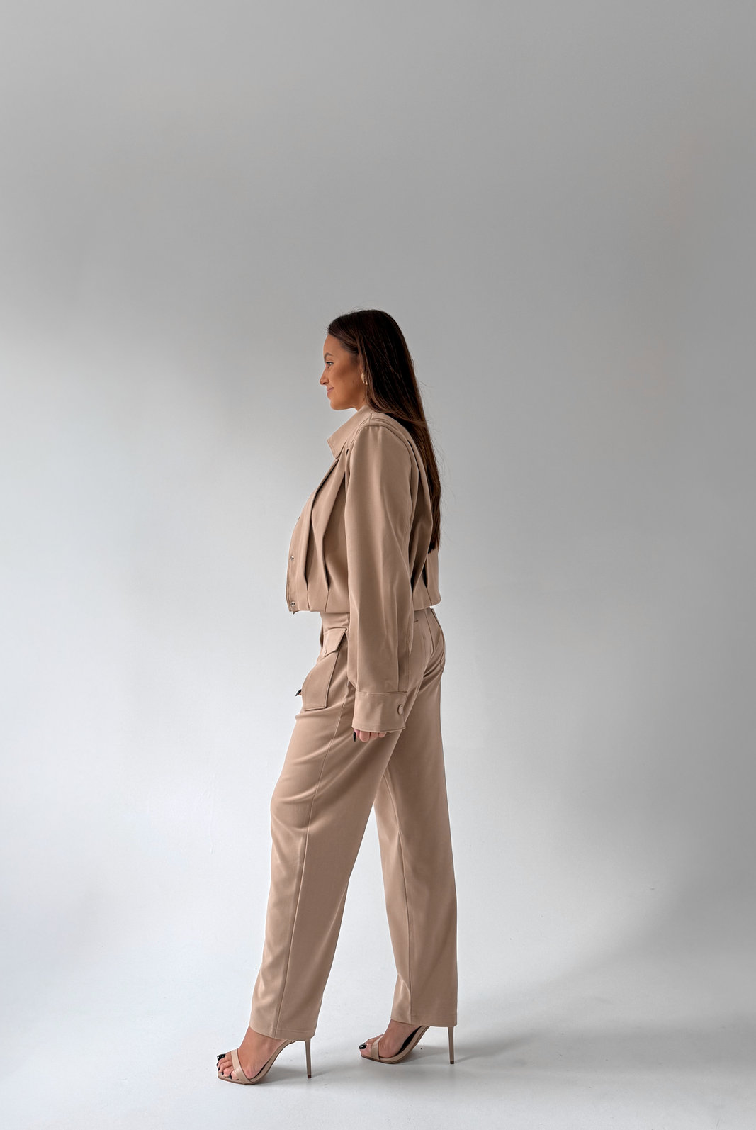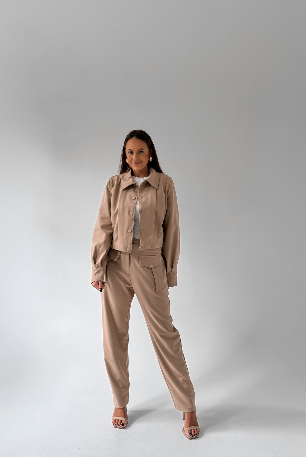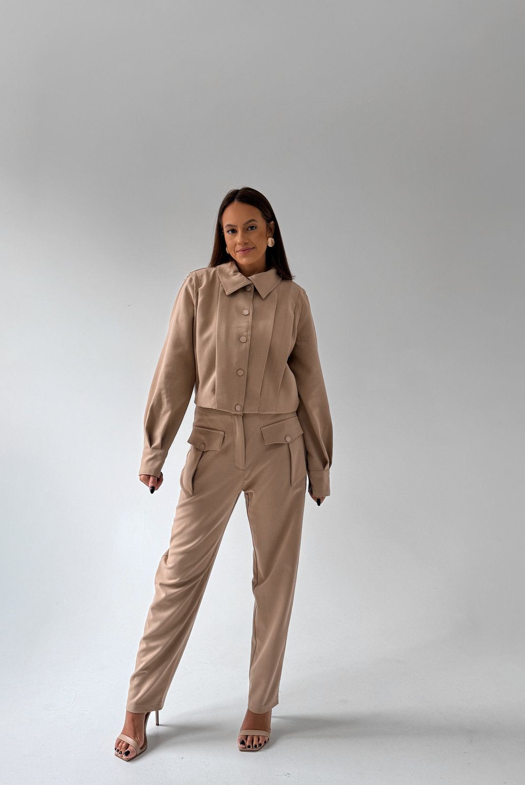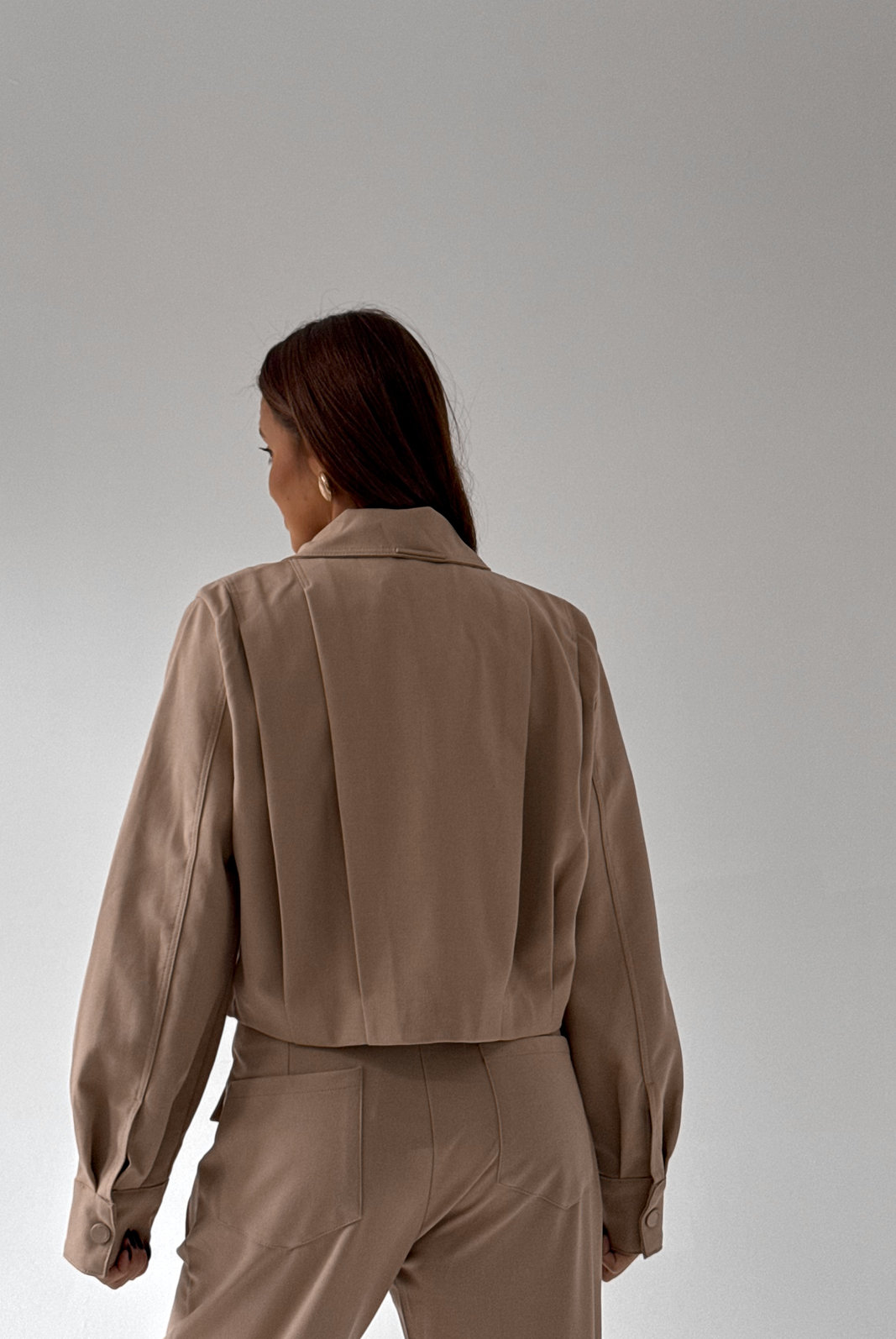 A Jaqueta Cropped Glenda possui detalhes frontais em pregas. Com fechamento frontal e ajuste do punho da manga em botões de pressão, possui forro interno e gola estruturada.
