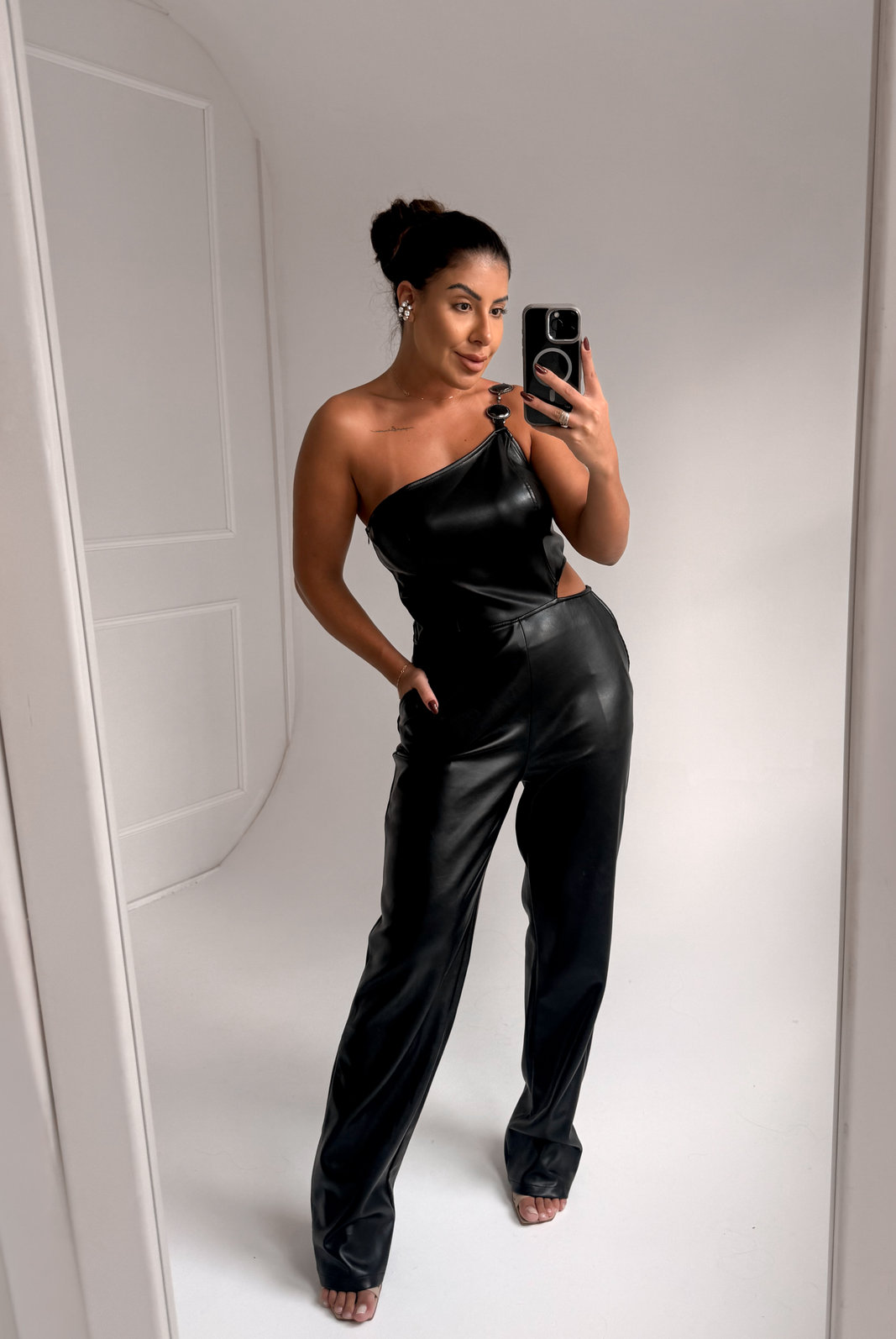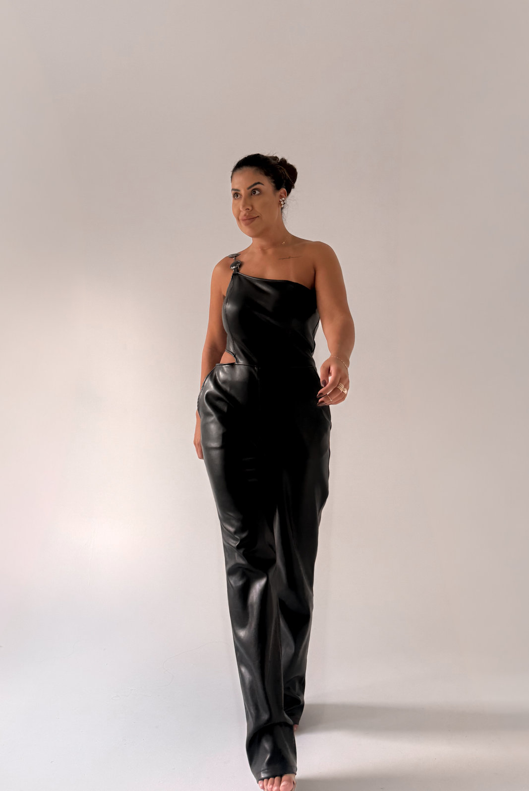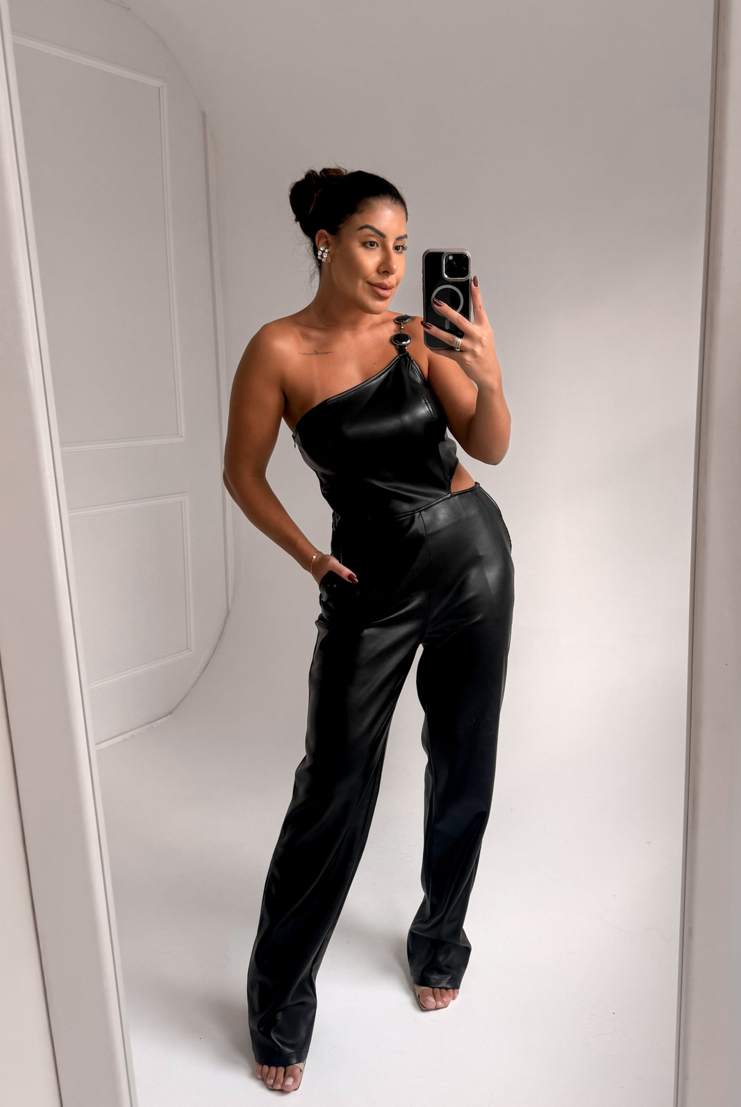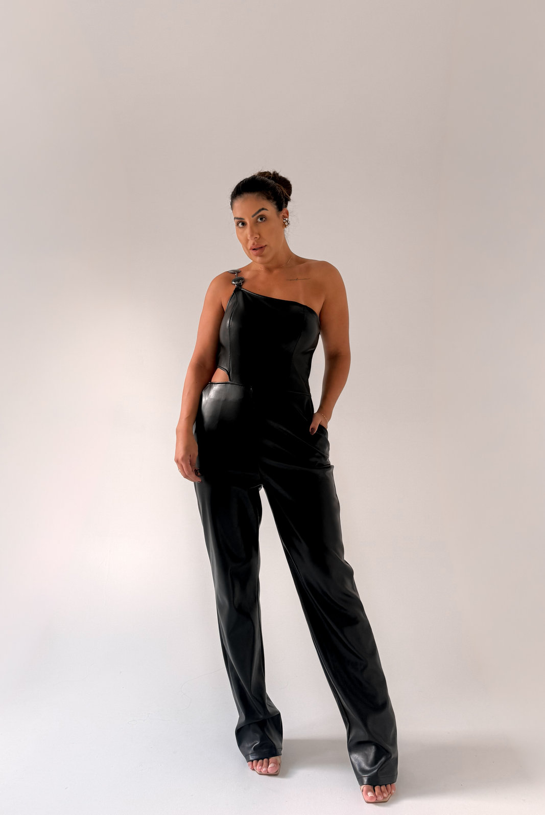 O Macacão Olívia MYFT é de ombro único, com recorte na cintura do lado direito, bolsos nas lateriais e fechamento na lateral esquerda. Com costuras e pencis estratégicos para acinturar e valorizar a silhueta, a alça é composta por aplicações pratas que dão um charme pra esse macacão. Na parte interna possui toque aveludado.