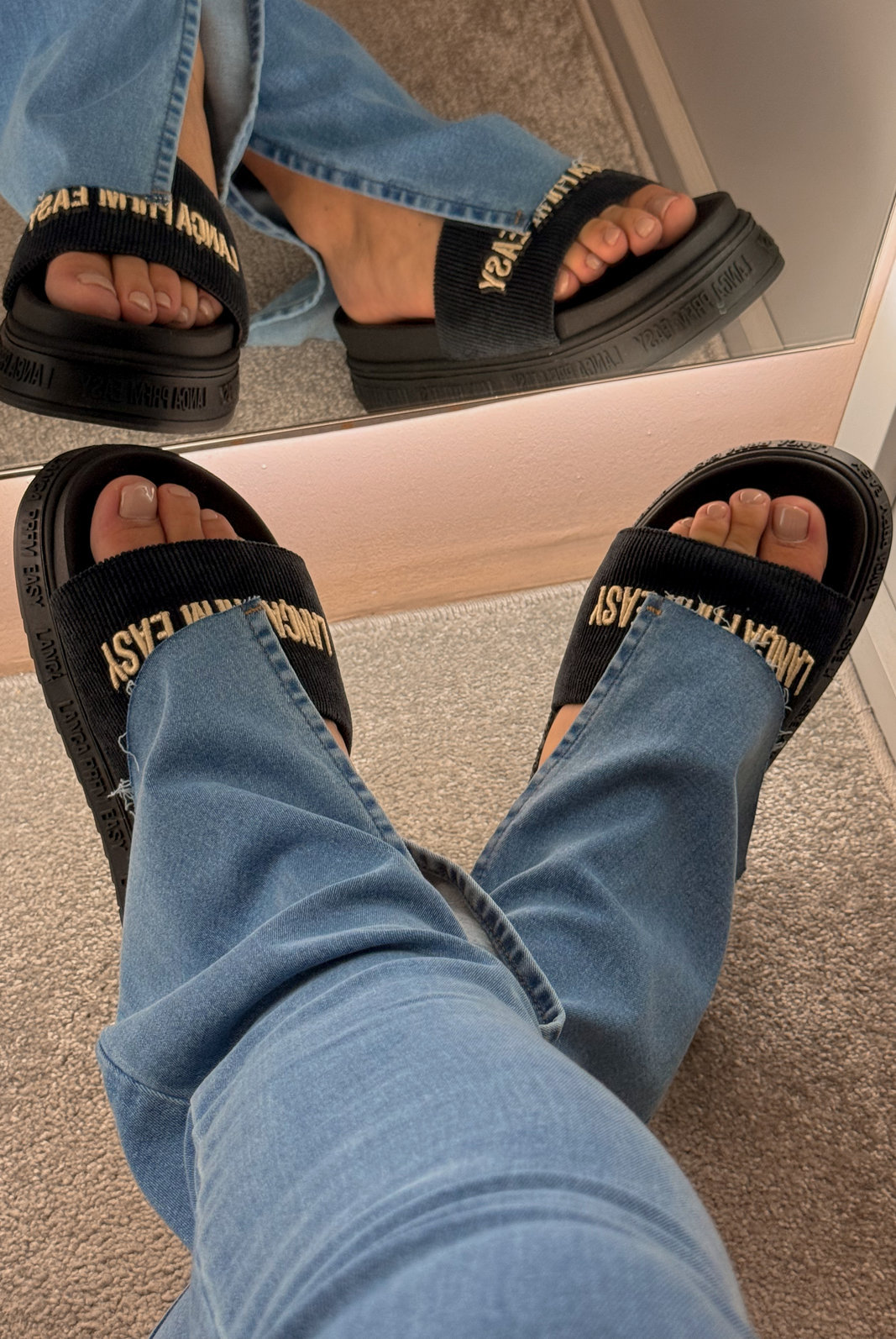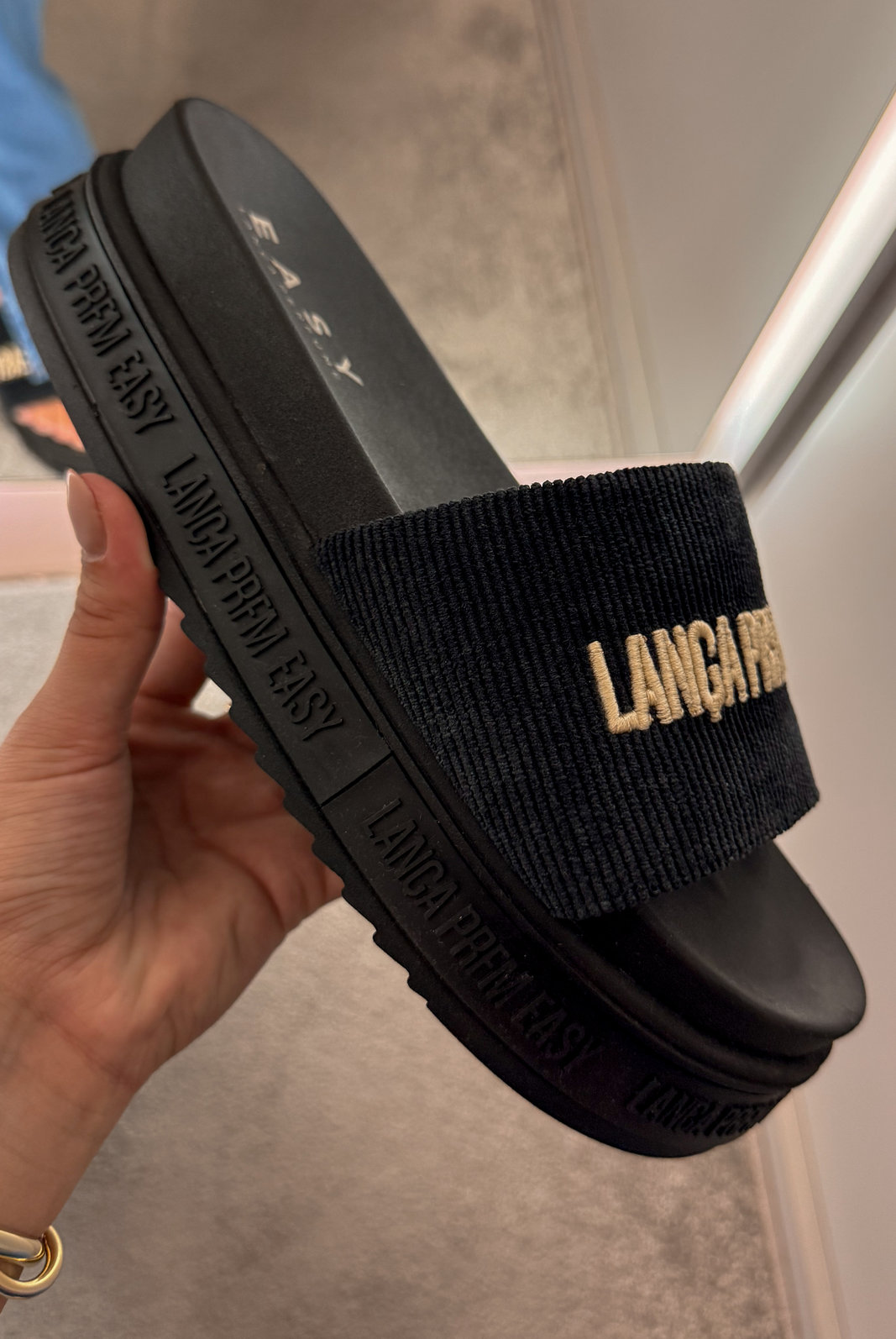 Essa é aquela slide que você tanto procurava! Minimalista mas cheia de informação de moda! Confortável e estilosa, a tira é em tecido com o nome da marca bordado, e em toda a lateral do solado possui a logomania da marca também. O calçado que vai dar aquele toque final no look que transmiste atitude e autenticidade!