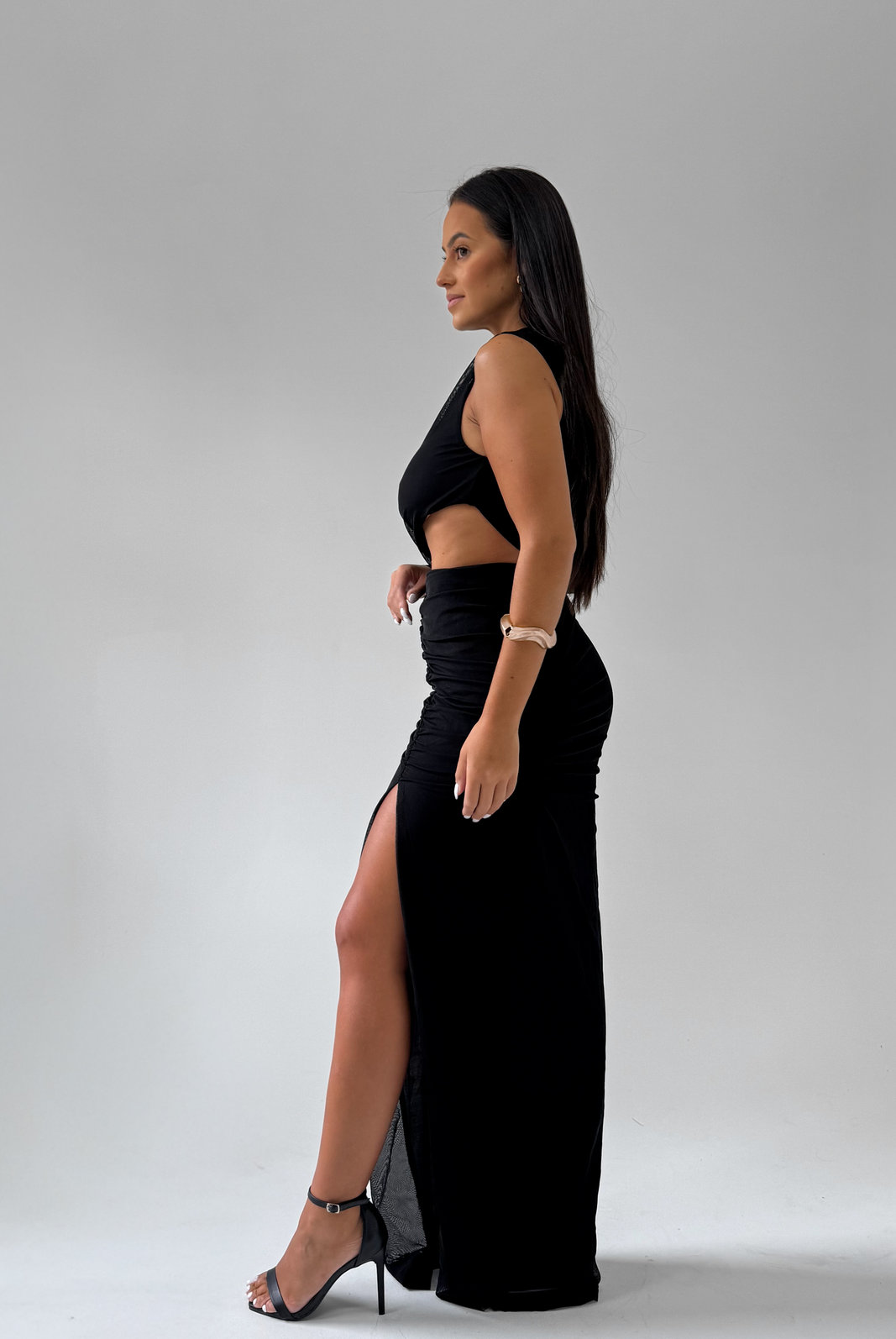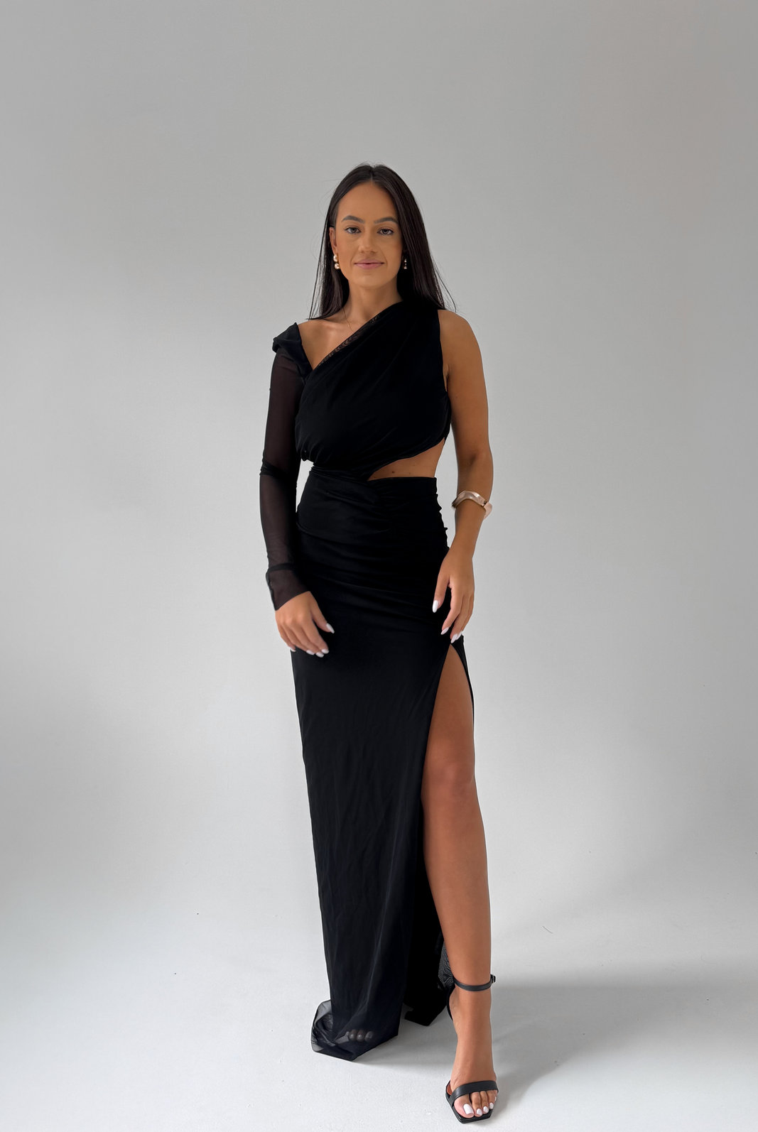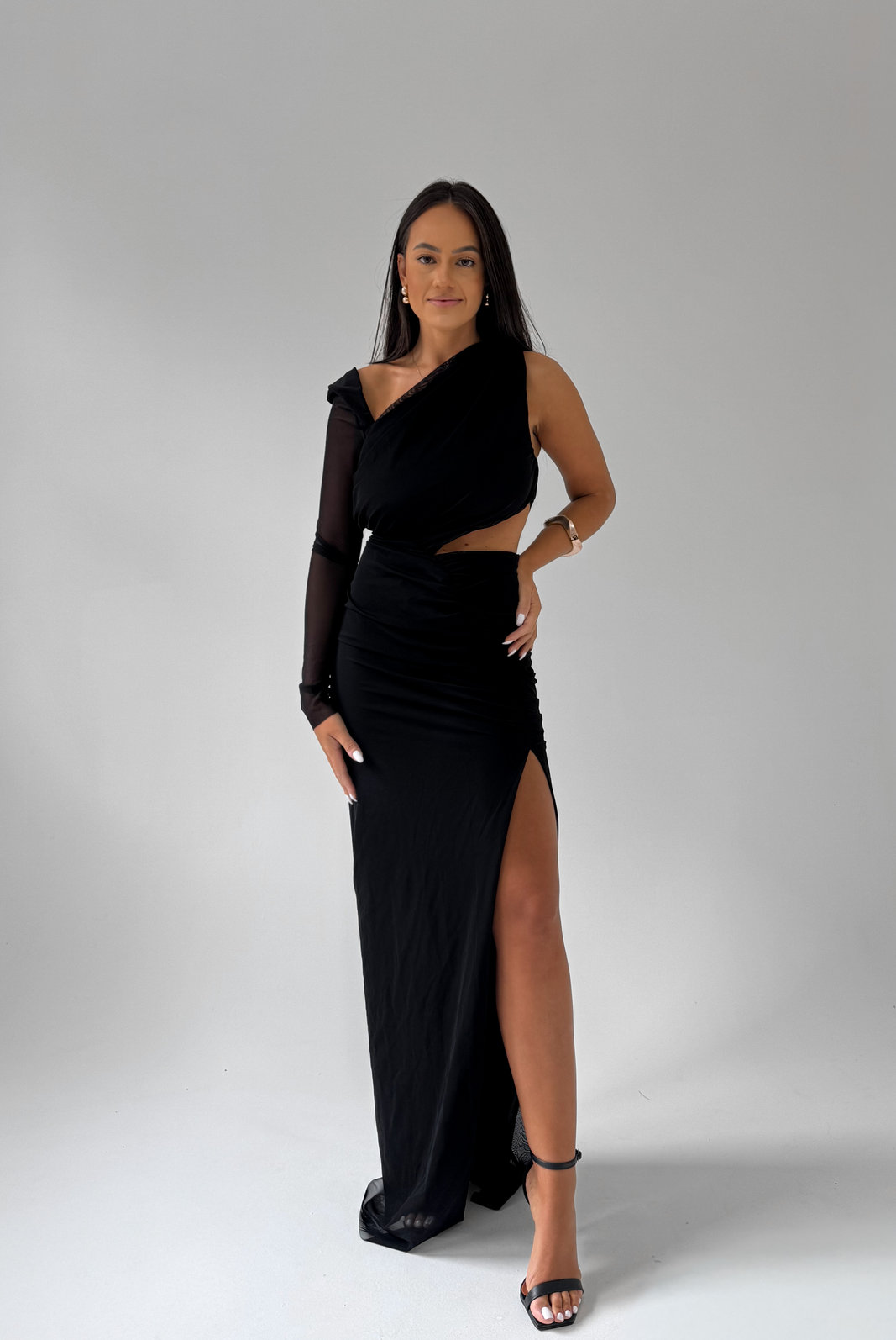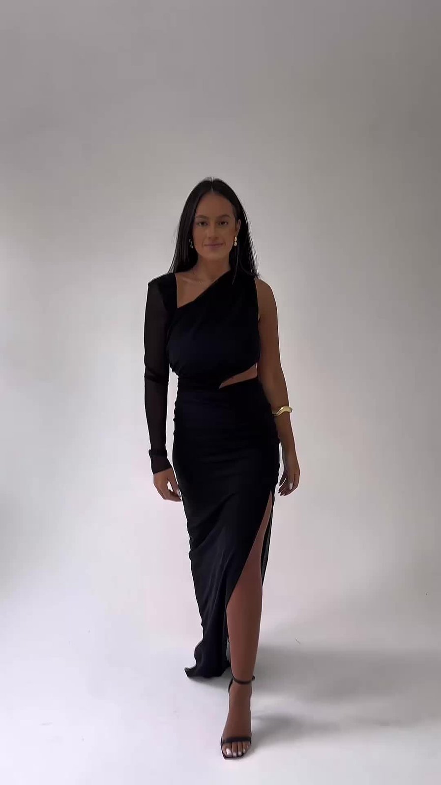 O Vestido Longo Andri MYFT possui recortes estratégicos para valorizar o teu corpo e entregar um visual super elegante e sexy na medida certa. Possui manga longa do lado direito, recorte na cintura e fenda frontal do lado esquerdo.
