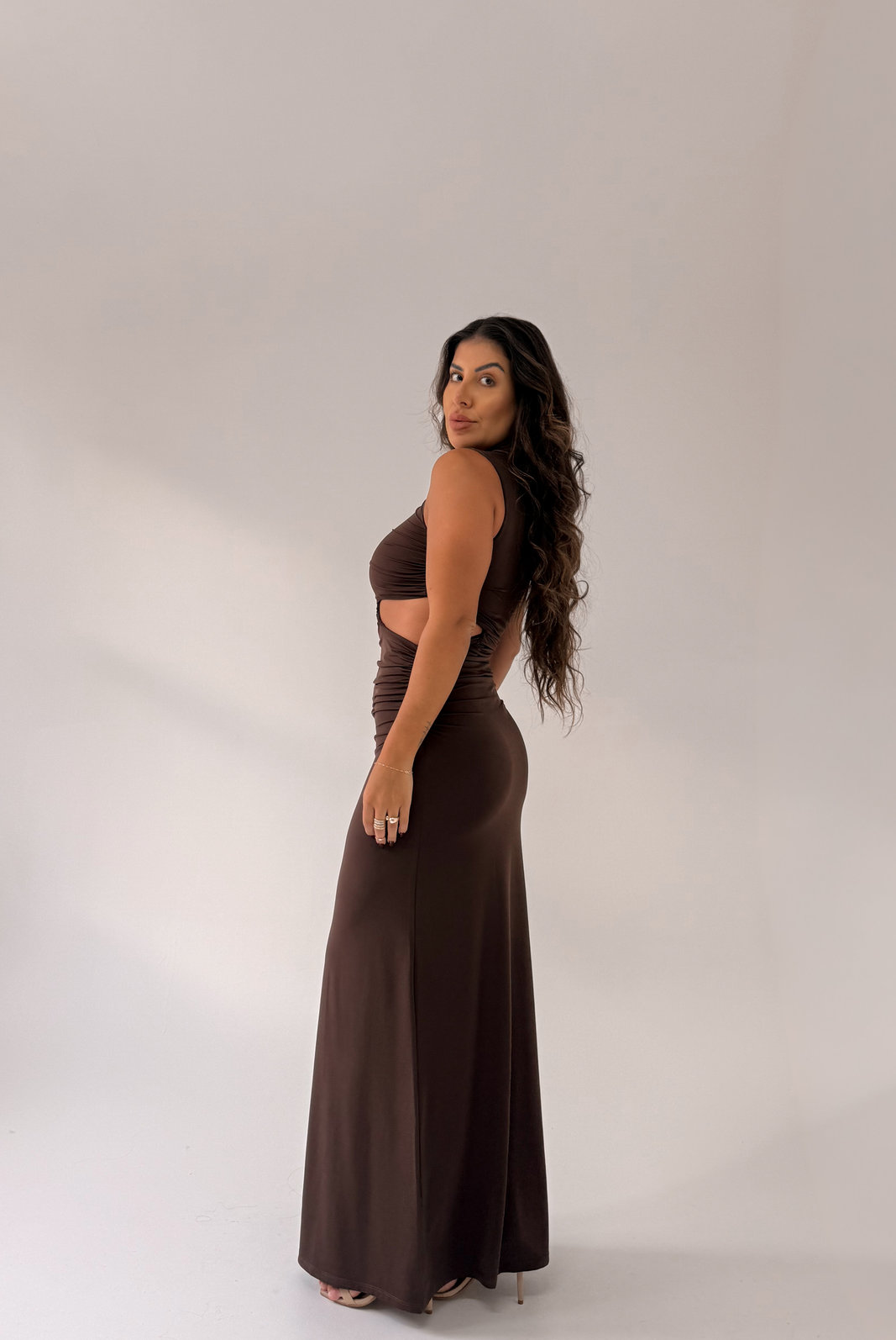 • Recorte na cintura do lado esquerdo